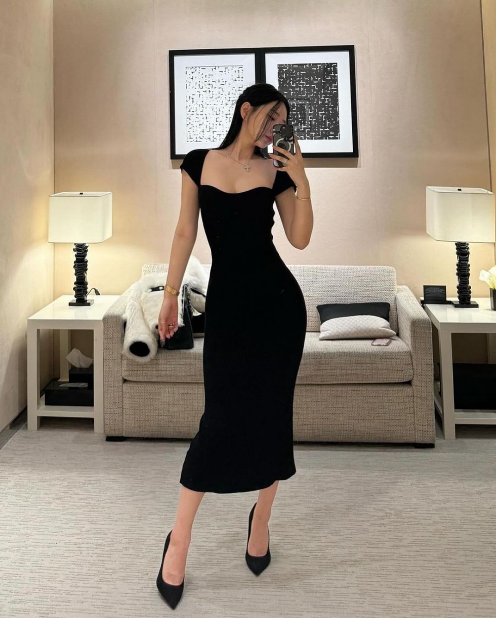 살이 있는 라인... 블랙 원피스