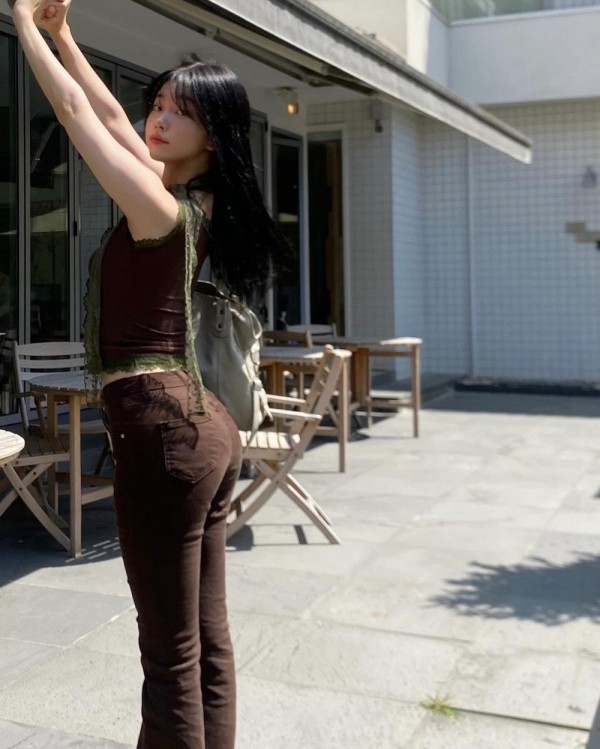 빌리 츠키 갈색 끈나시 면바지 몸매