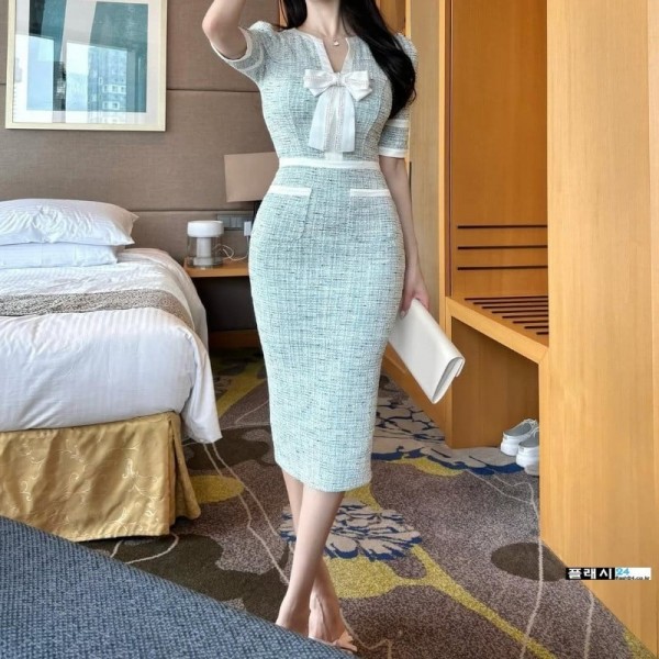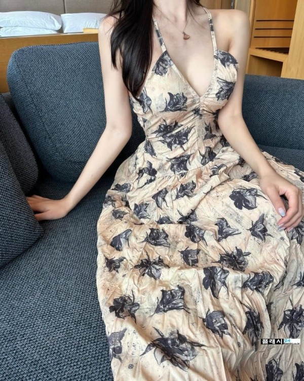 두팔 올려서 포즈 취하는 이안...데님 원피스