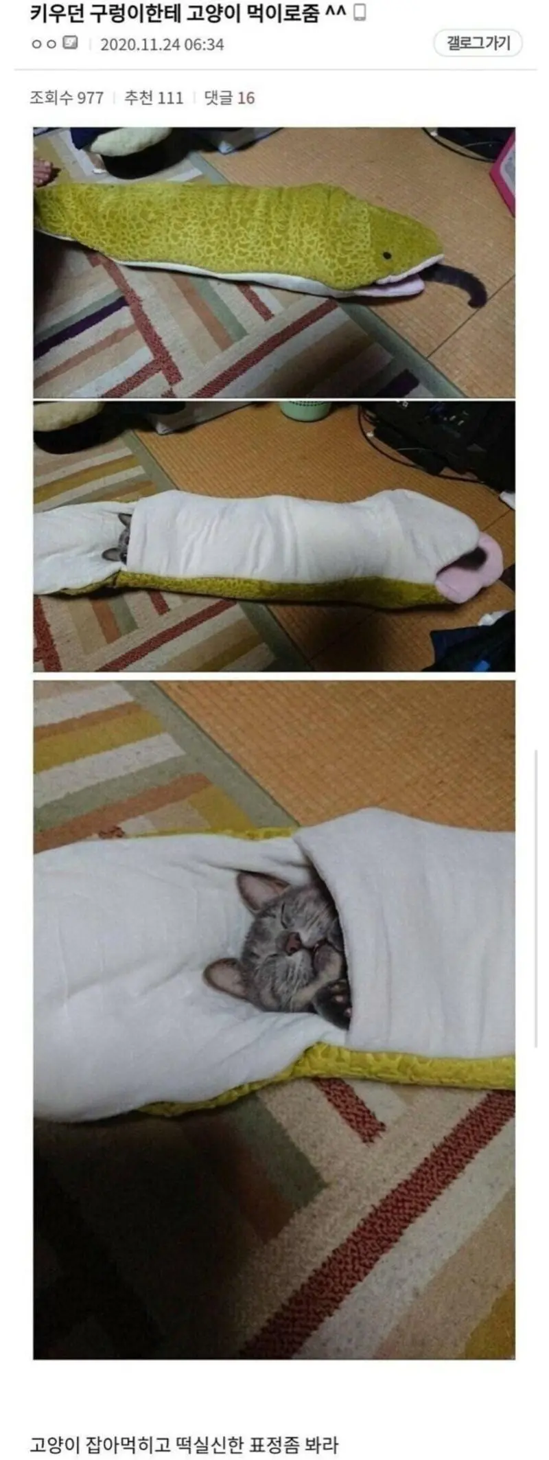 키우던 구렁이한테 고양이를 먹이로 던져준 디시인