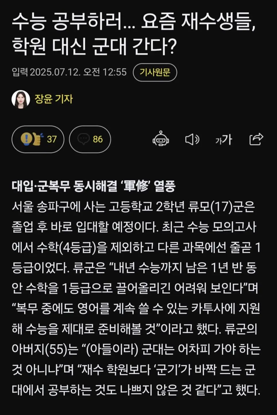 https://n.news.naver.com/article/023/0003916607?sid=102 공군가라 육군은 철야 훈련도 많은데 공군은 훈련 자체가 거의 없다 근무도 헌병이 서준다 복무 마치고 바로 대학가면 동원 1번도 안할 수 있다.