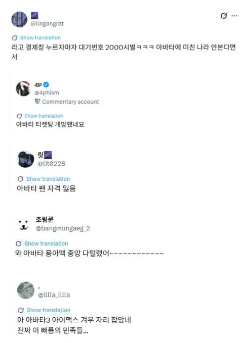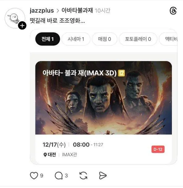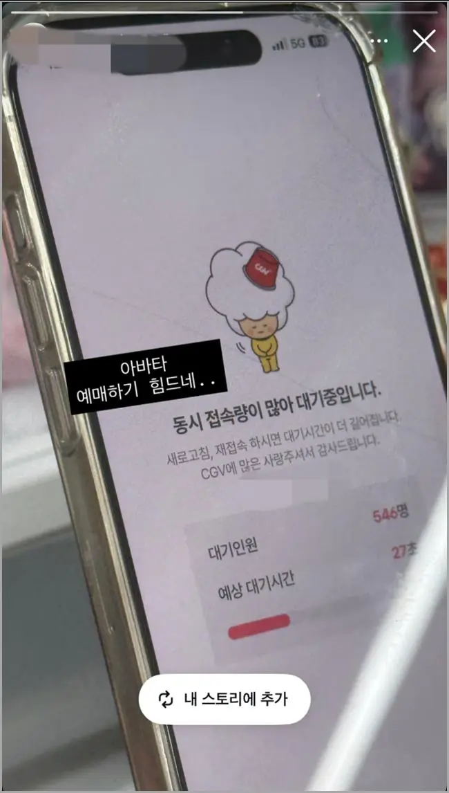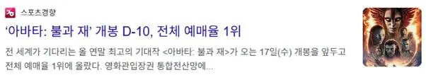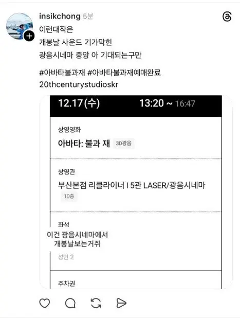 지난주 12/5일에 아바타 예매 풀렸었는데