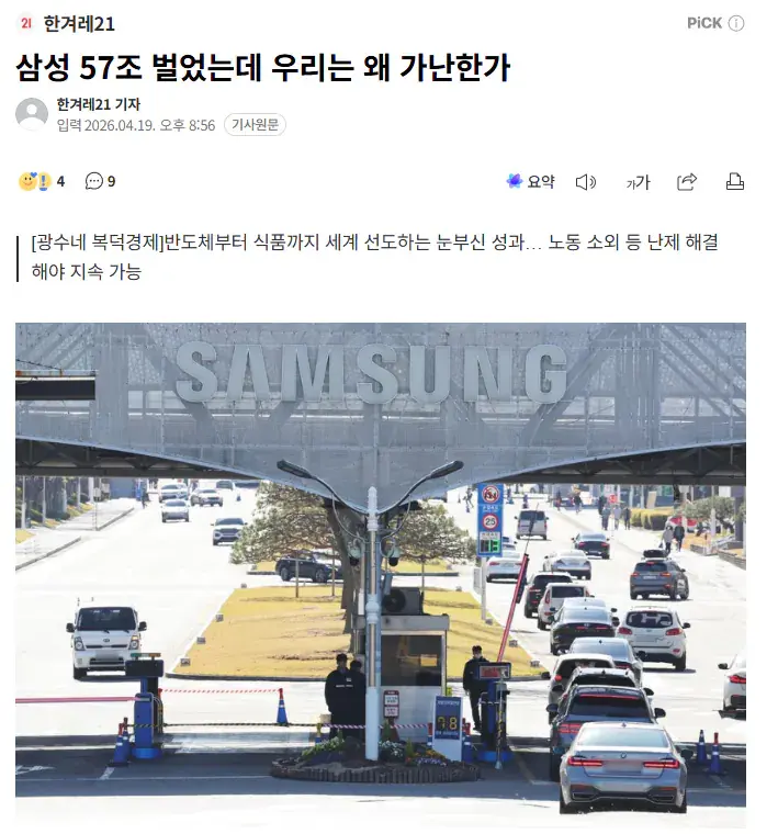 "삼성 57조 벌었는데 우리는 왜 가난한가"