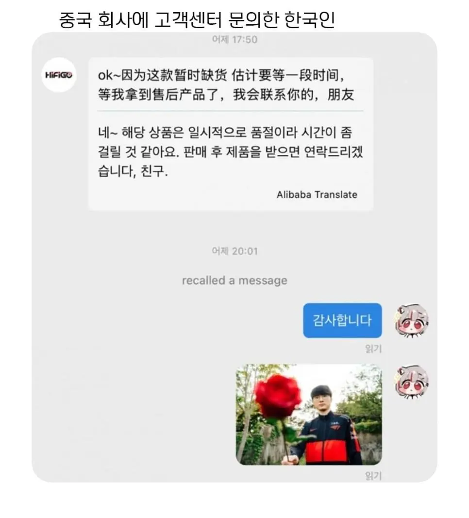 중국 고객센터에 문의한 한국인