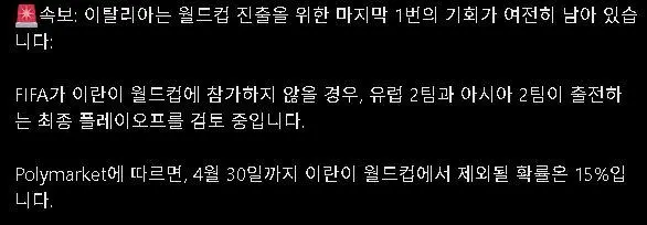 이란이 월드컵 불참하면 이탈리아는 기회가 남아 있습니다
