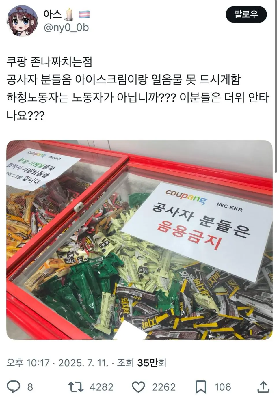 트위터에서 논란 중인 쿠팡 아이스크림 차별