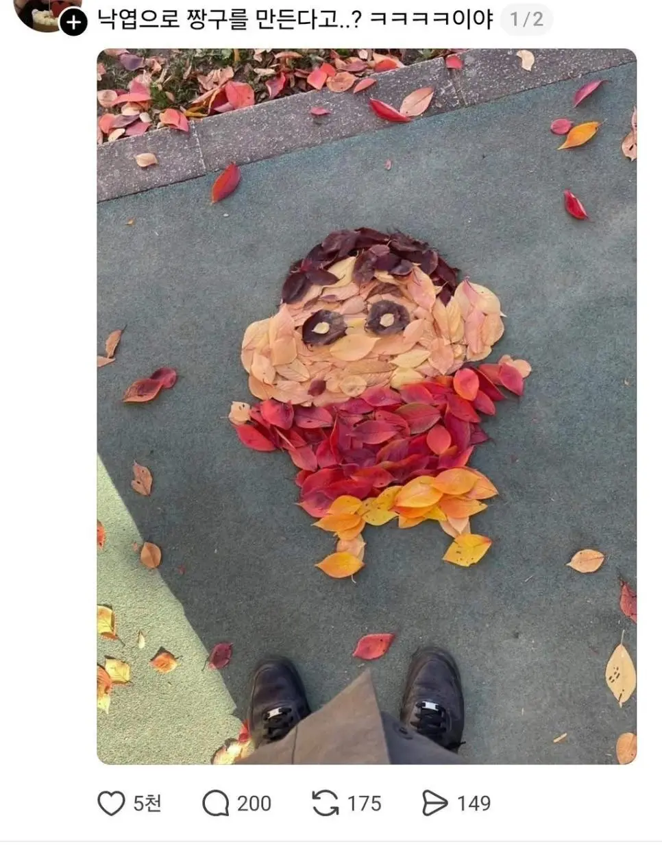 낙엽으로 만든 짱구