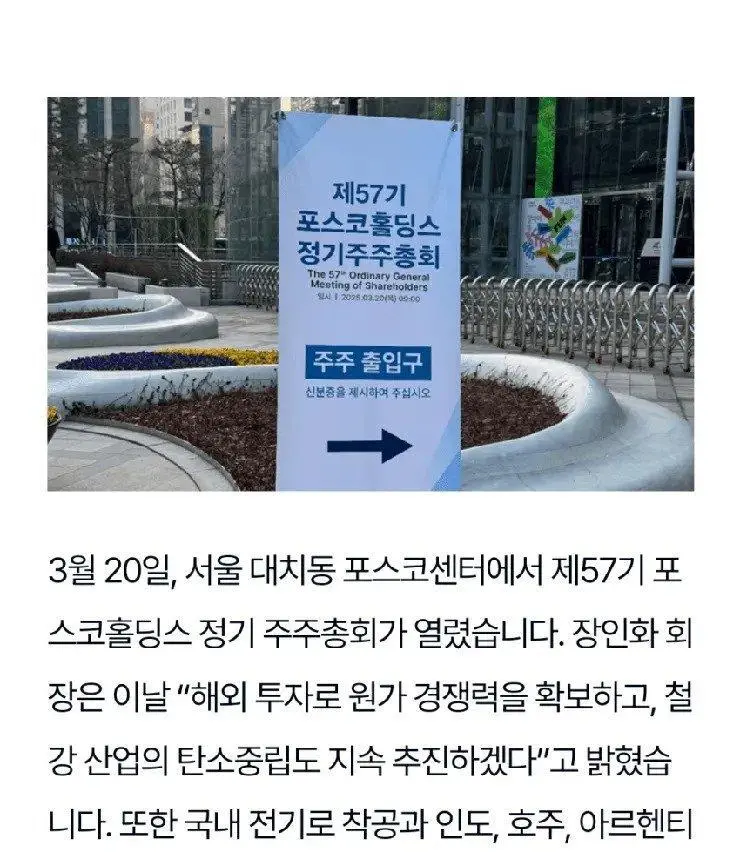 25년 3월 업댓된 주총짤 1. 출입구는 정문이지만 막혀있고 지하 주차장으로 들어가야함 2. 들어가니 모든 좌석이 꽉차있음. 자리 배정 받고온 기자도 자기 자리에 누군가 앉아있음 3. 누구세요? 하니 아무 말도없이 일어나 퇴장 와 정말 국장 하고 싶어지네요