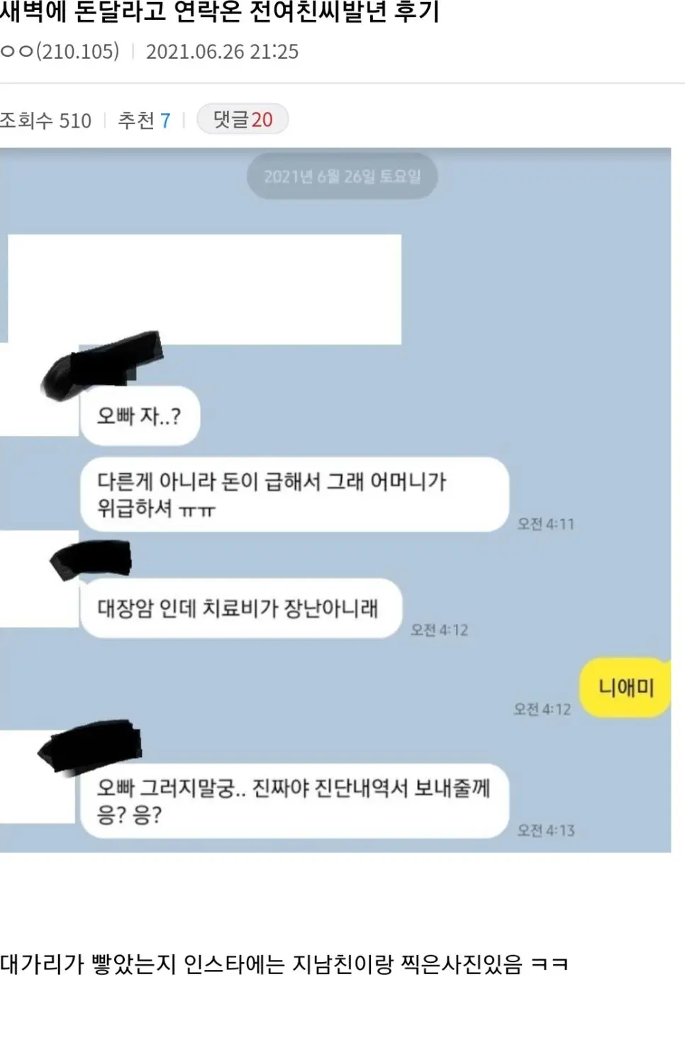 전여친한테 돈달라고 연락온 디시인