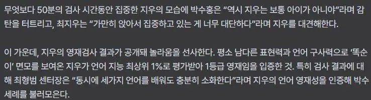 35개월짜리가 50분 테스트공안 온전하게 집중하는것도 레전든데 언어지능 최상위 1퍼센트 ; https://m.entertain.naver.com/home/article/117/0003962657