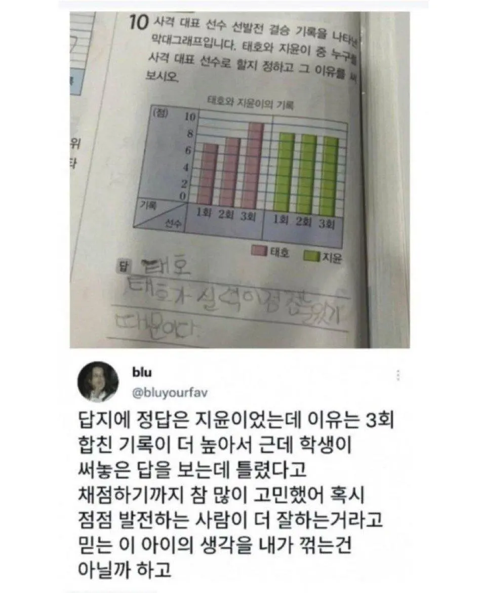 정답처리를 고민하는 선생님