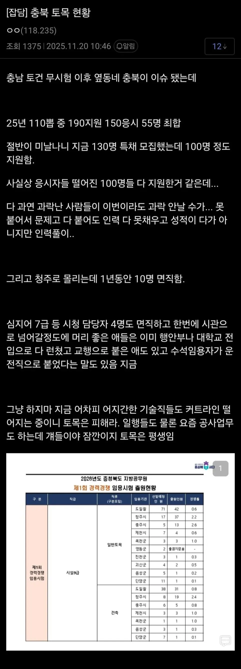 110명 뽑는데 55명 붙었다는 충북 토목직