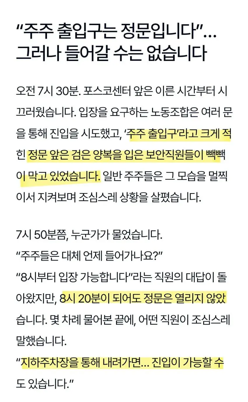 물적분할을 다루는 중요한 주총이었는데 건물앞에 경비세우고, 다른 건물로 잘못 안내하고 이런식으로 주주들 못들어가게 막음