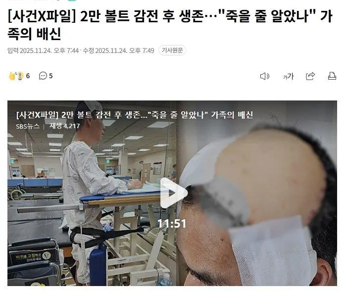 2만 볼트에 감전되었다가 살아난 이에게 닥친 더 큰 고통