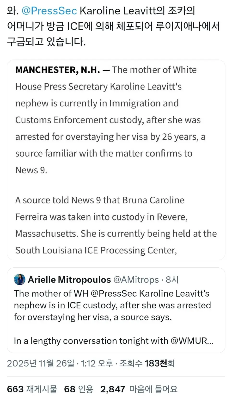 트럼프 정부 “느금마 대변인”의 올케, 이민당국에 체포