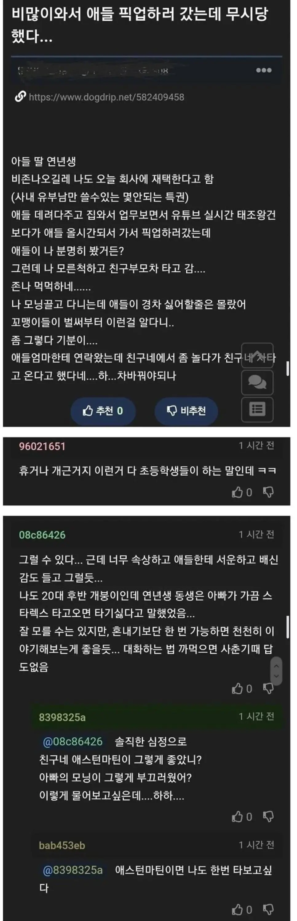 비와서 아들 픽업하러 갔다가 충격 먹은 아버지