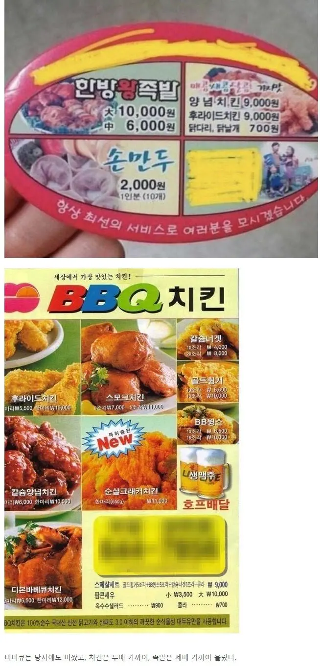 90년대 치킨&족발 가격