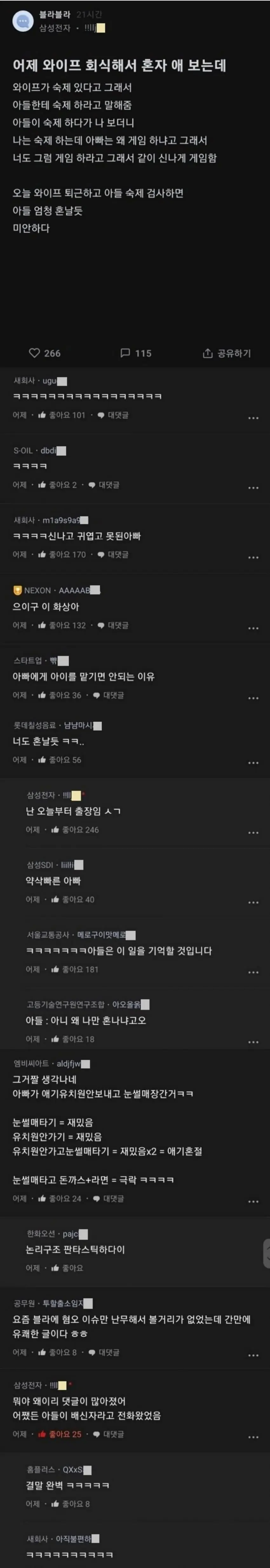 어제 와이프 회식해서 혼자 애 보는데