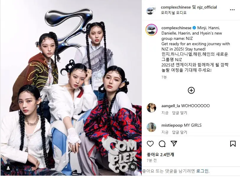 뉴진스 새로운 그룹명은 NJZ...25년 활동시작합니다.