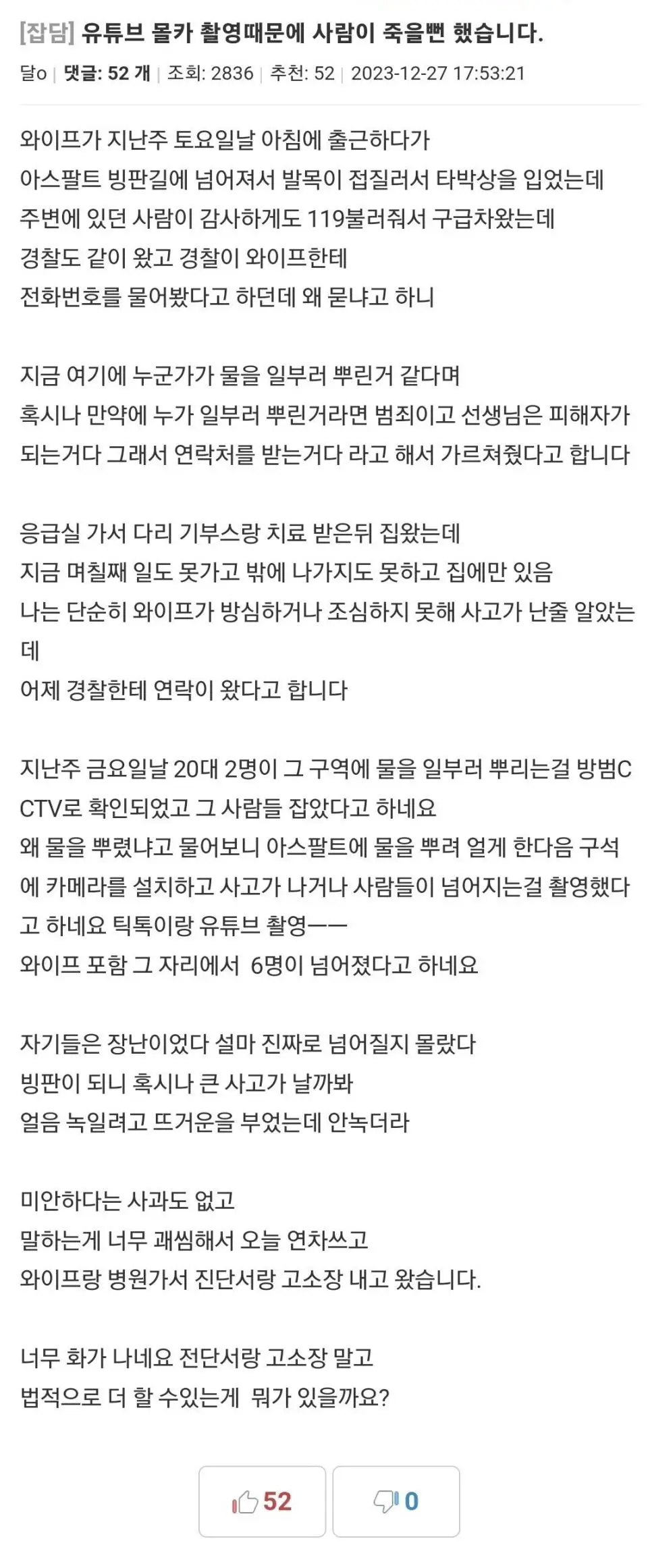 유튜브 몰카 촬영때문에 사람이 죽을뻔 했습니다