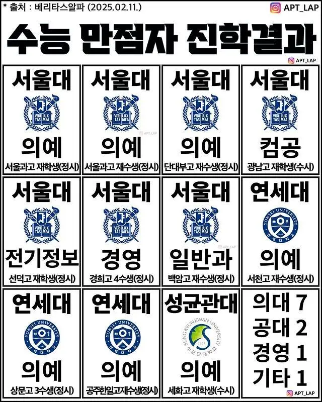 2025 수능만점자 11명 진학 결과