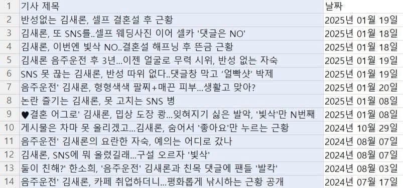 어느신문사 기자가 6개월 동안 김새론관련 쓴 기사