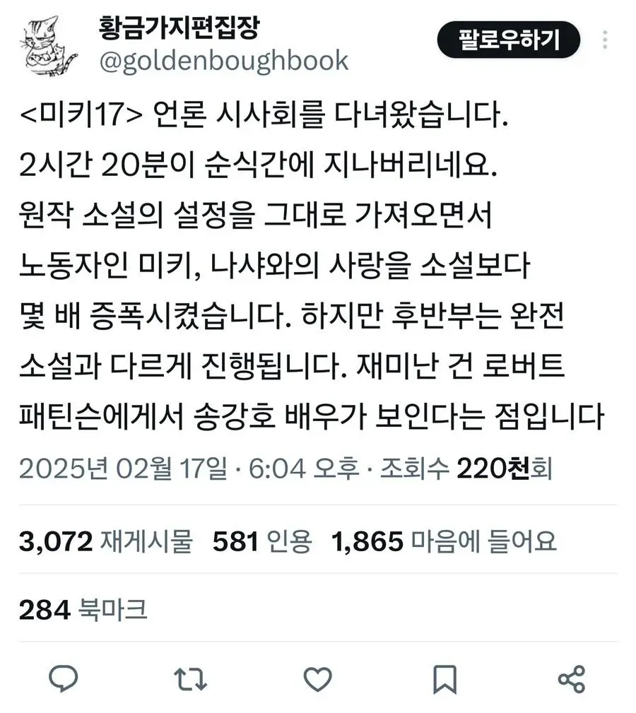 황금가지 편집장의 미키 17 언론 시사회 후기