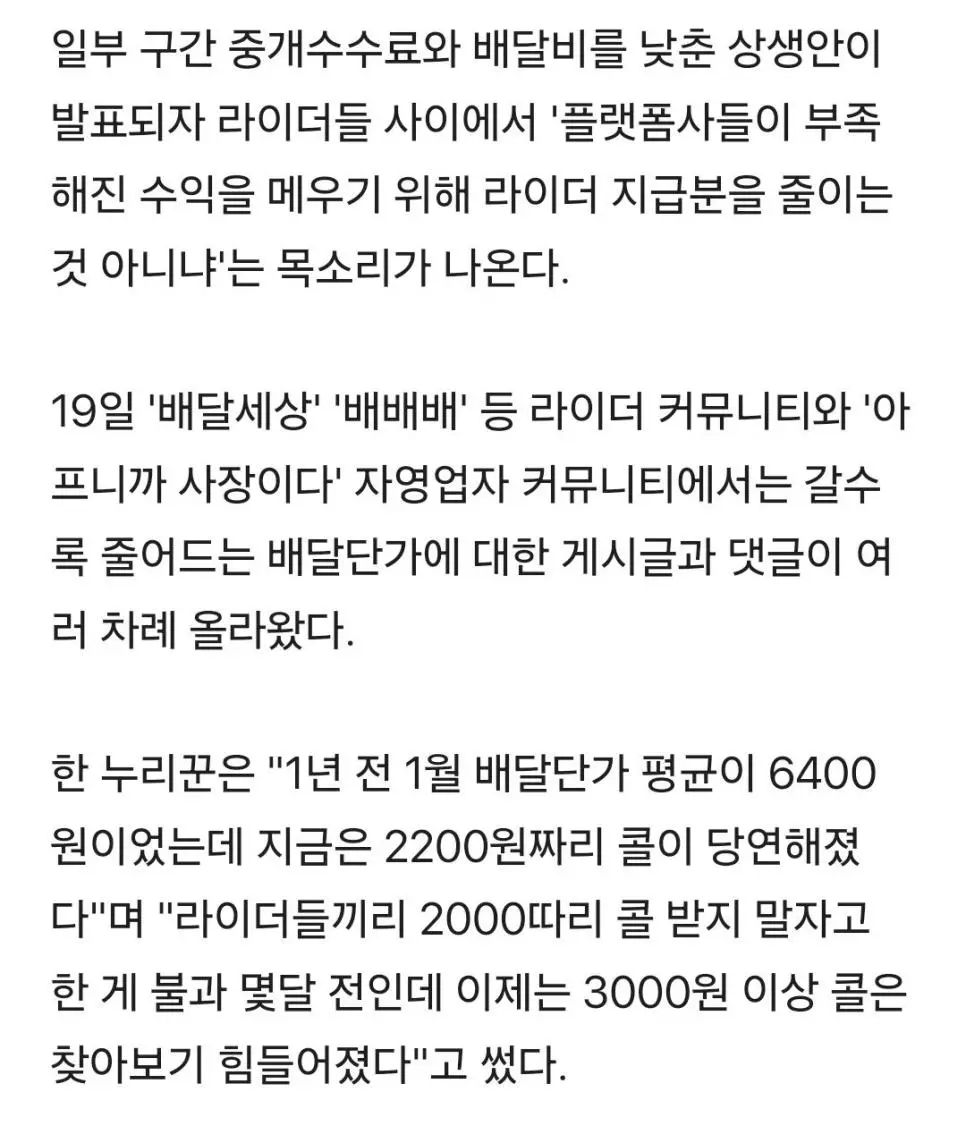 1년새 배달단가 '6400원 > 2200원'에 라이더들 분통…"이게 다 무료배달 때문
