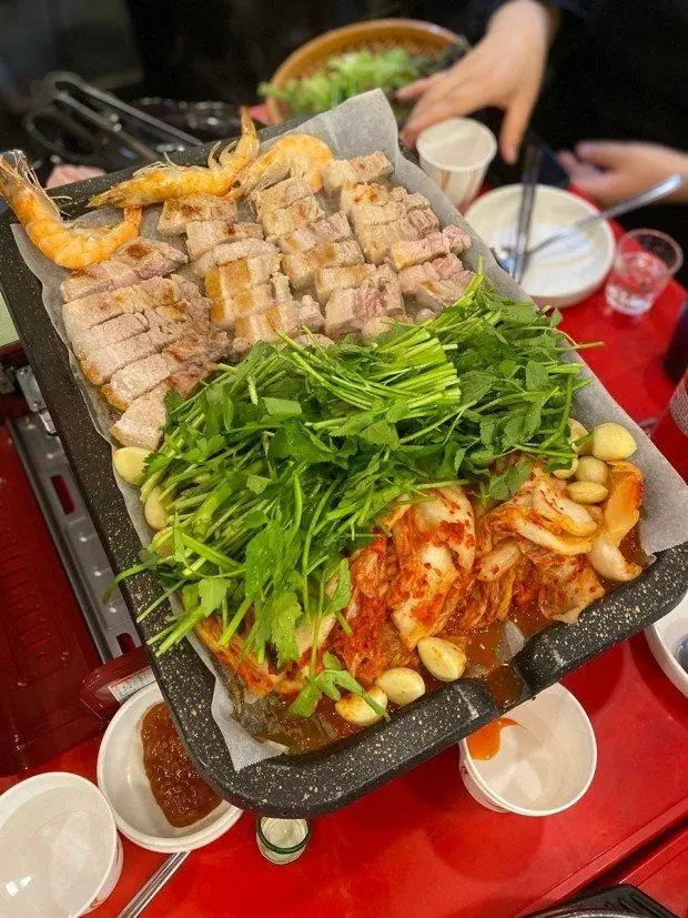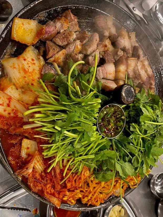 미나리 김치 삼겹살