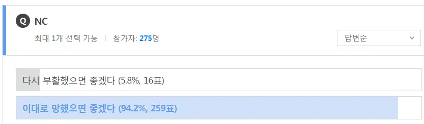엔씨 순위 근황