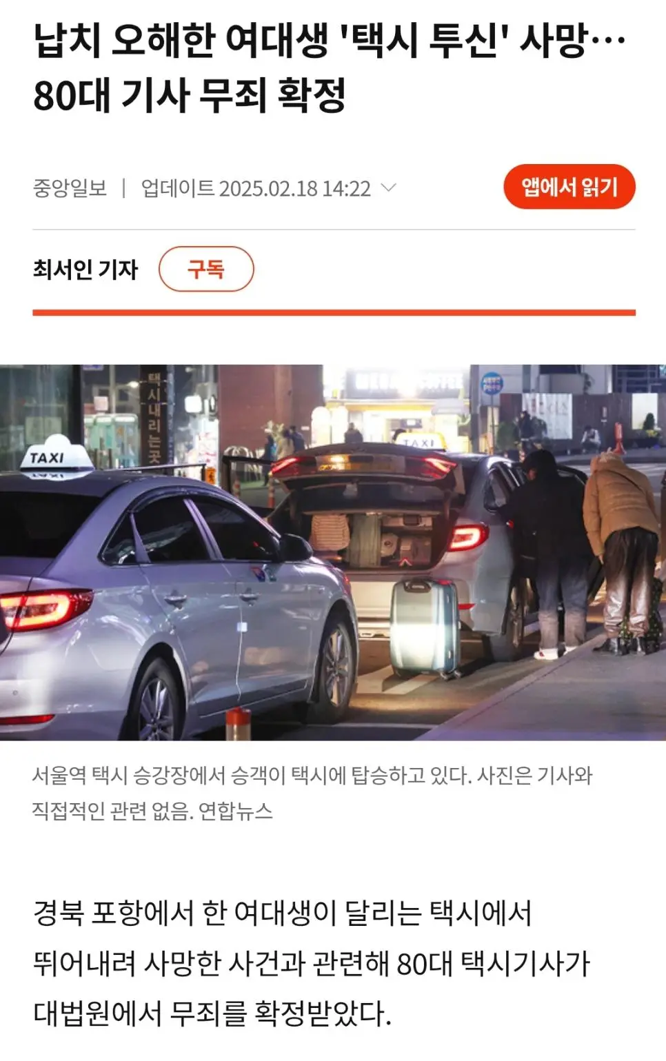 여대생 택시에서 뛰어내린 사건 무죄 확정