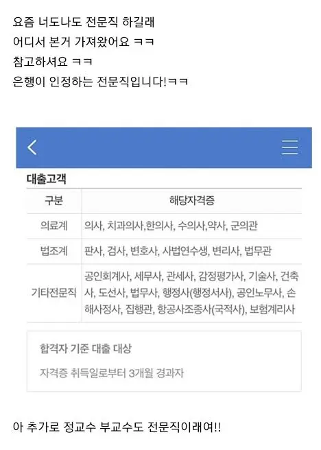 은행에서 인정하는 전문직