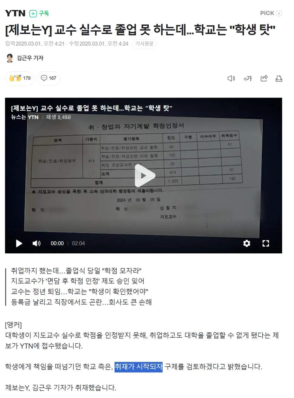 교수 실수로 졸업 못 하는데...학교는 "학생 탓"