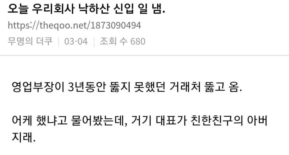 회사에서 사건 터뜨린 낙하산 신입...