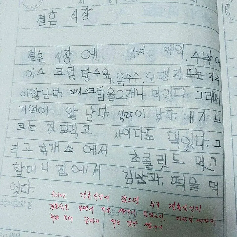 어릴 때 결혼식장 다녀와서 쓴 일기