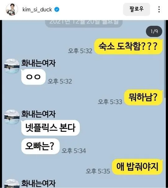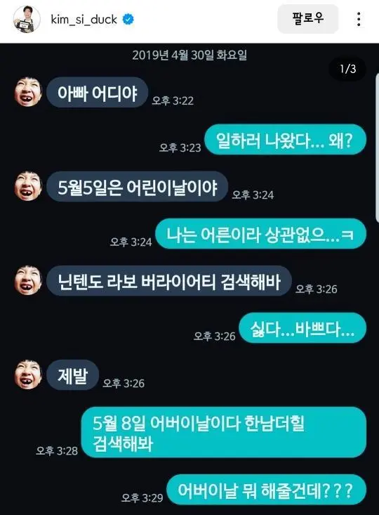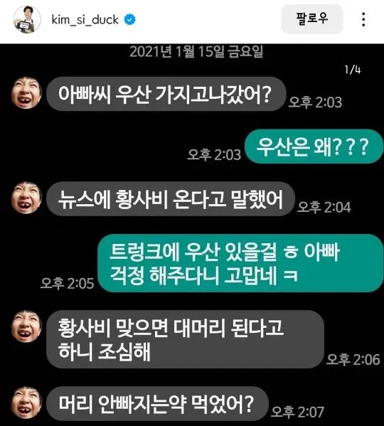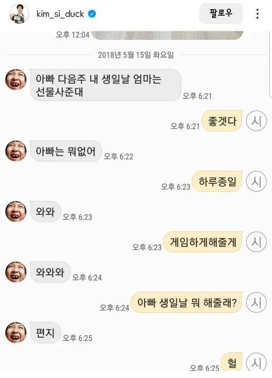 개그맨 김시덕 가족들이랑 문자시리즈