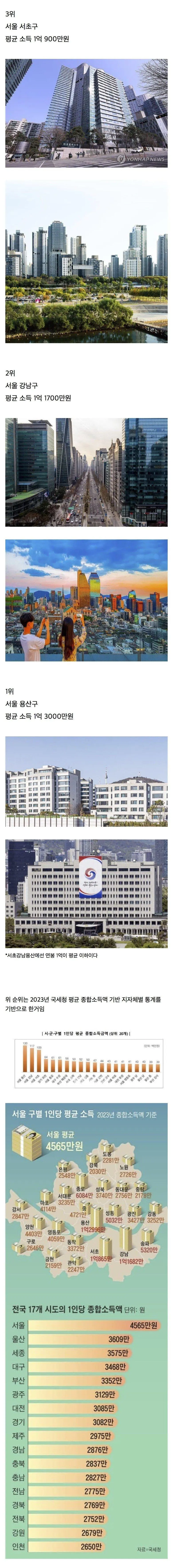 한국 평균소득이 높은 동네 TOP10