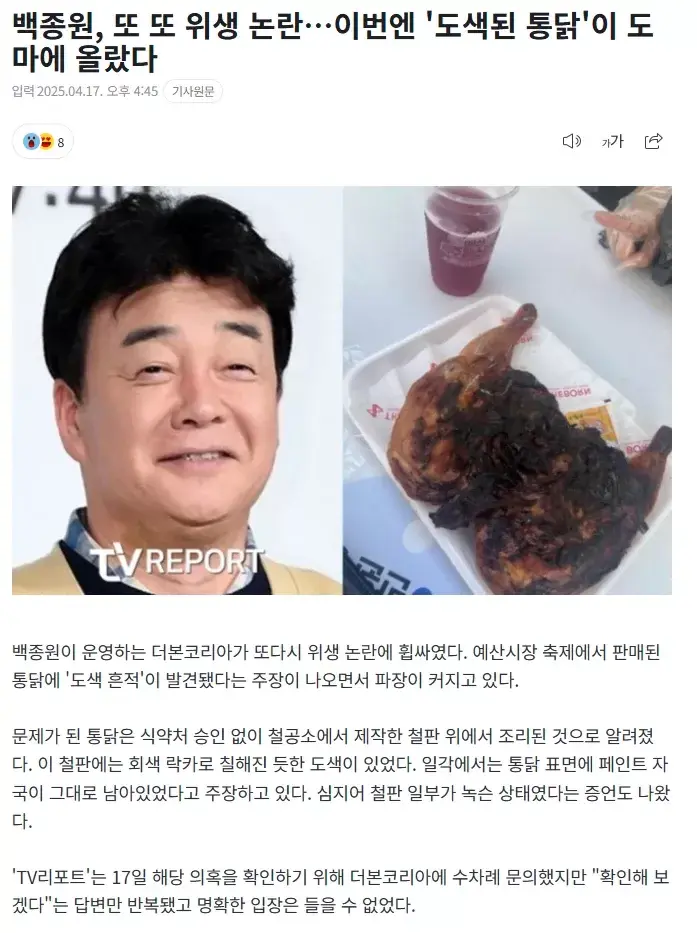 예산 축제에서 통닭을 구운 바베큐용 석쇠가 공업용 페인트로 칠해서 급조된 조리기구라는 이야기가 터졌네요.