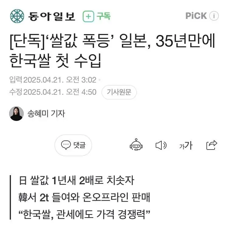 일본 공식 한국쌀수입 근황 ㄷㄷ