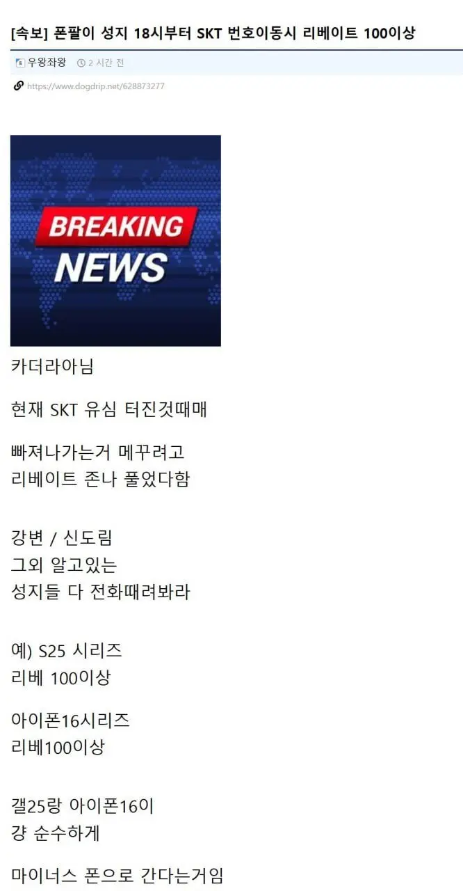 skt측에서 해킹사건 고객이탈 방지위해 대란 터트림