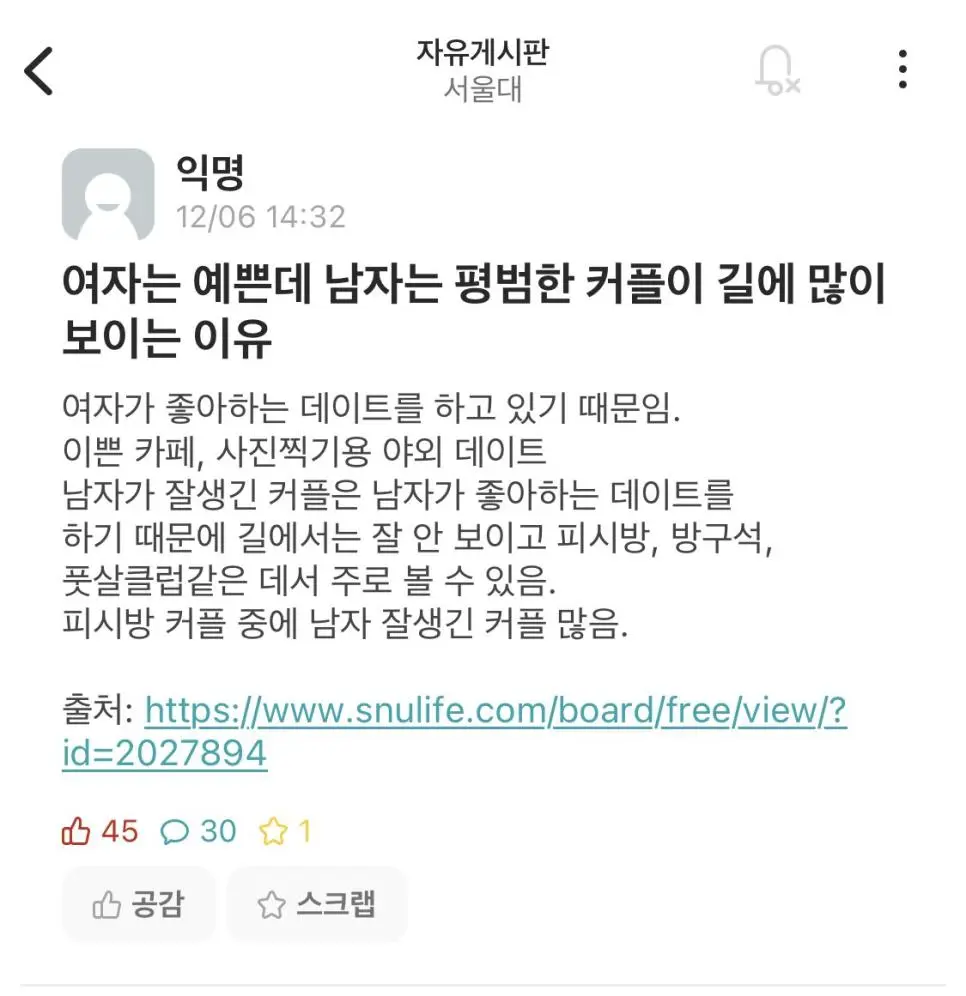 여자는 예쁜데 남자는 평범한 커플이 유독 많이 보이는 이유