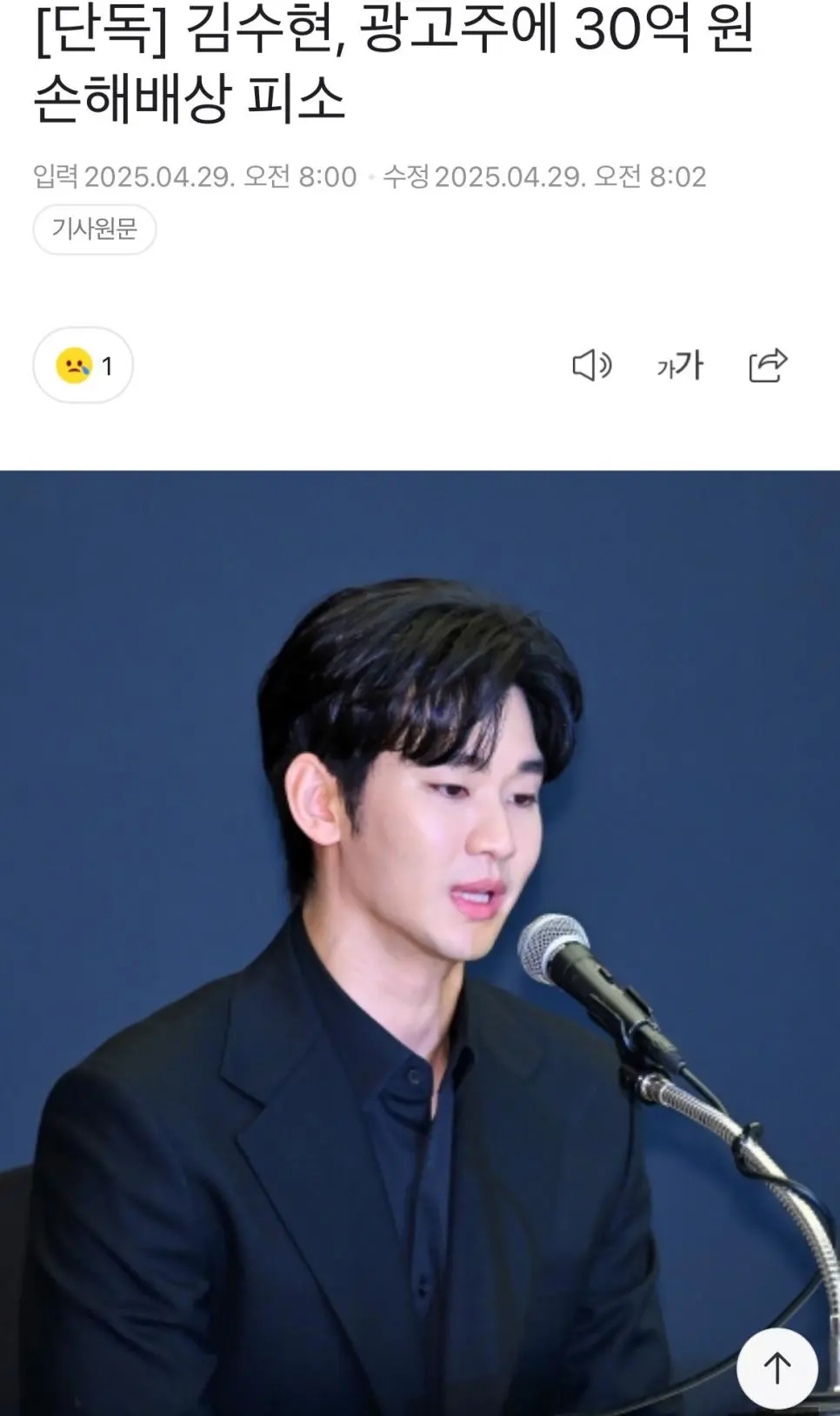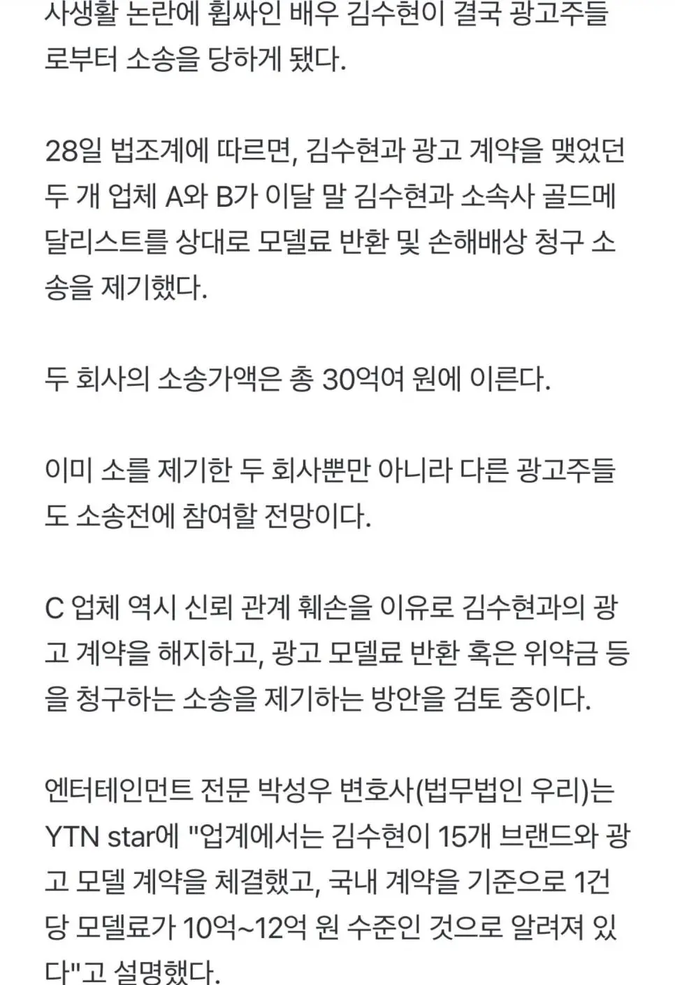 단독] 김수현, 광고주에 30억 원 손해배상 피소