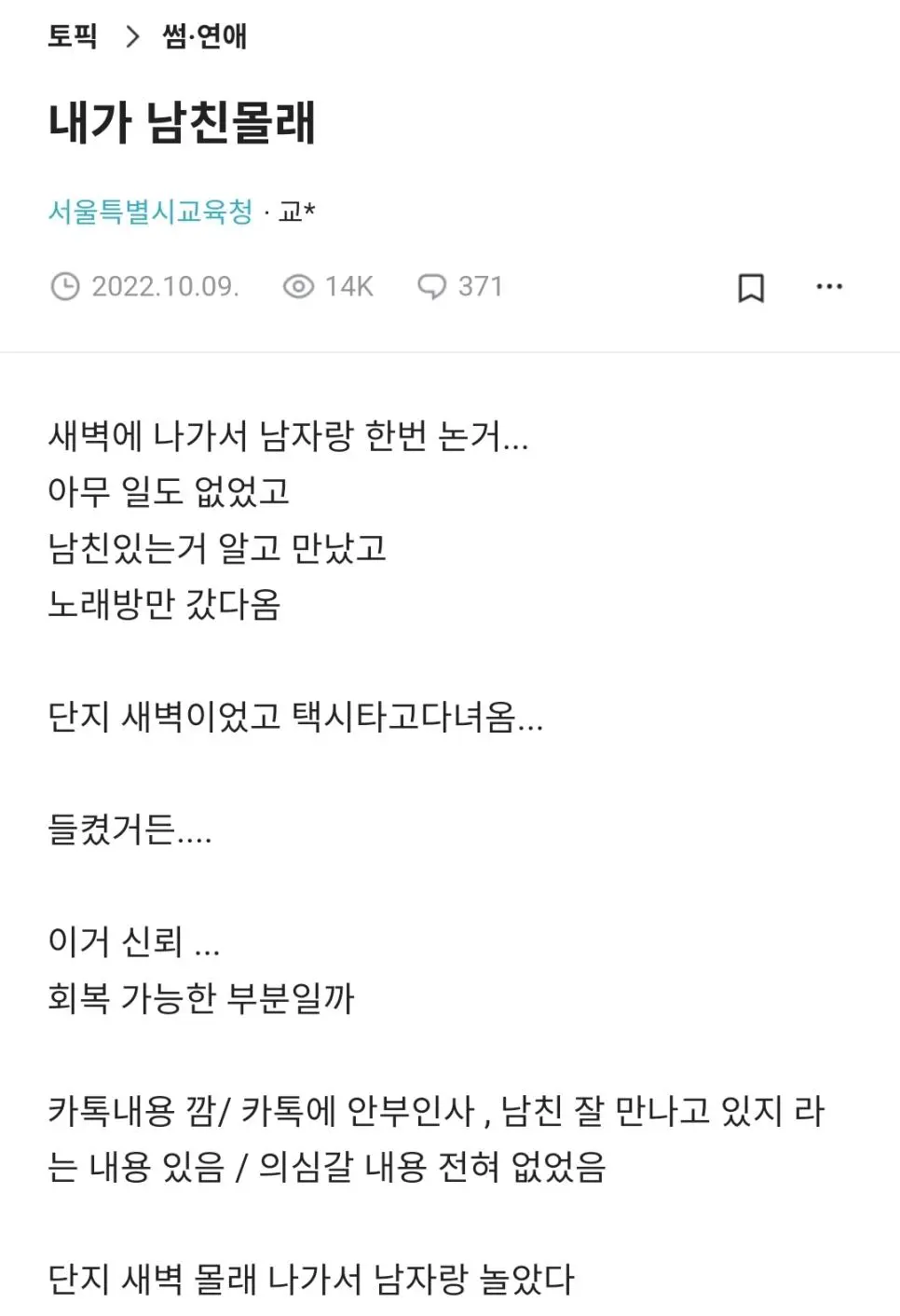 남친과의 신뢰를 회복하고 싶다는 여자.blind