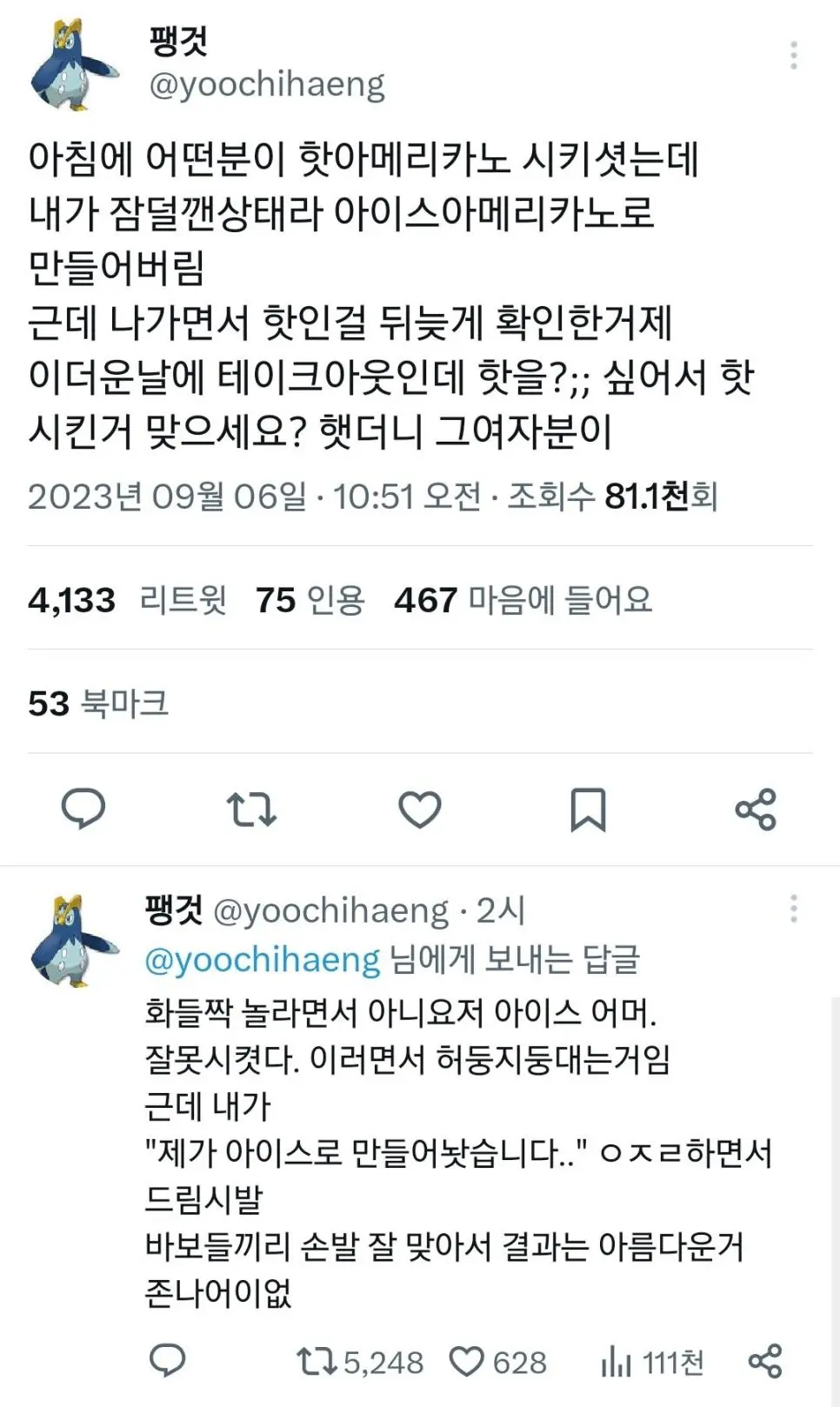 초코마루를 샀는데 호두마루를 먹을 뻔 하다가 초코마루를 먹은 사람