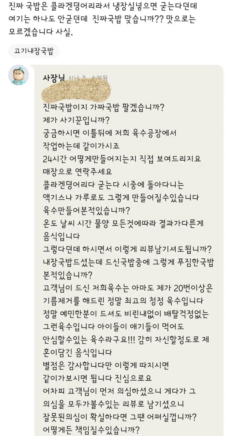 진짜 국밥 맞냐는 리뷰에 울분토한 사장님