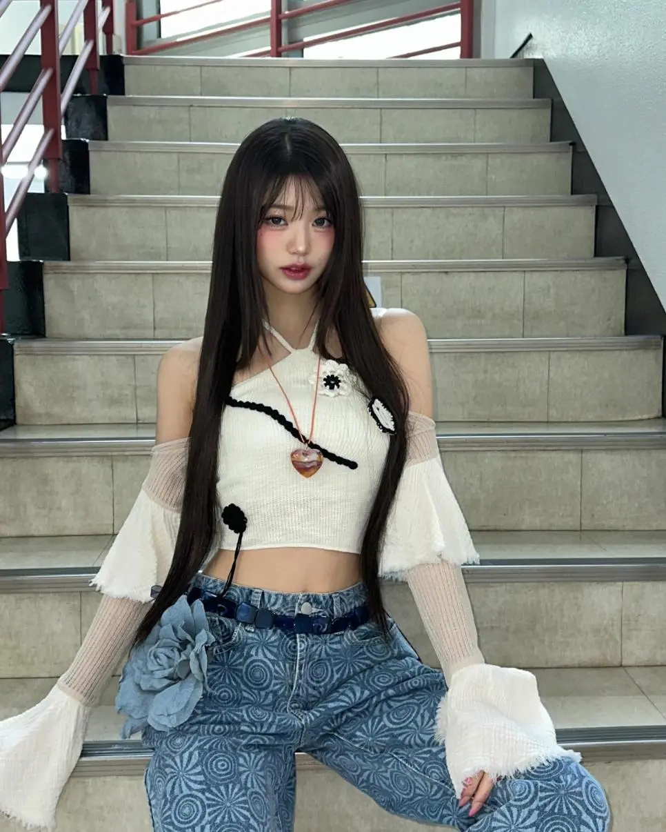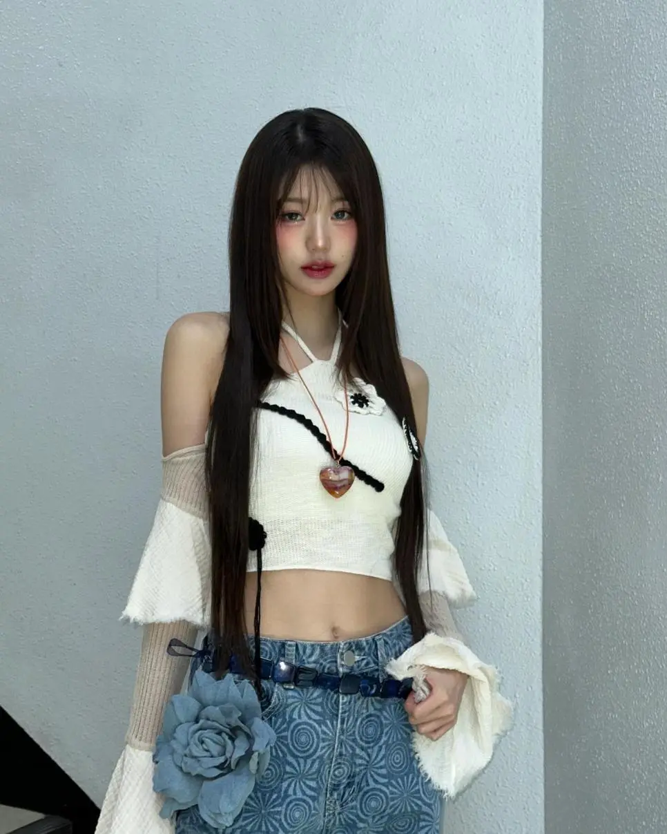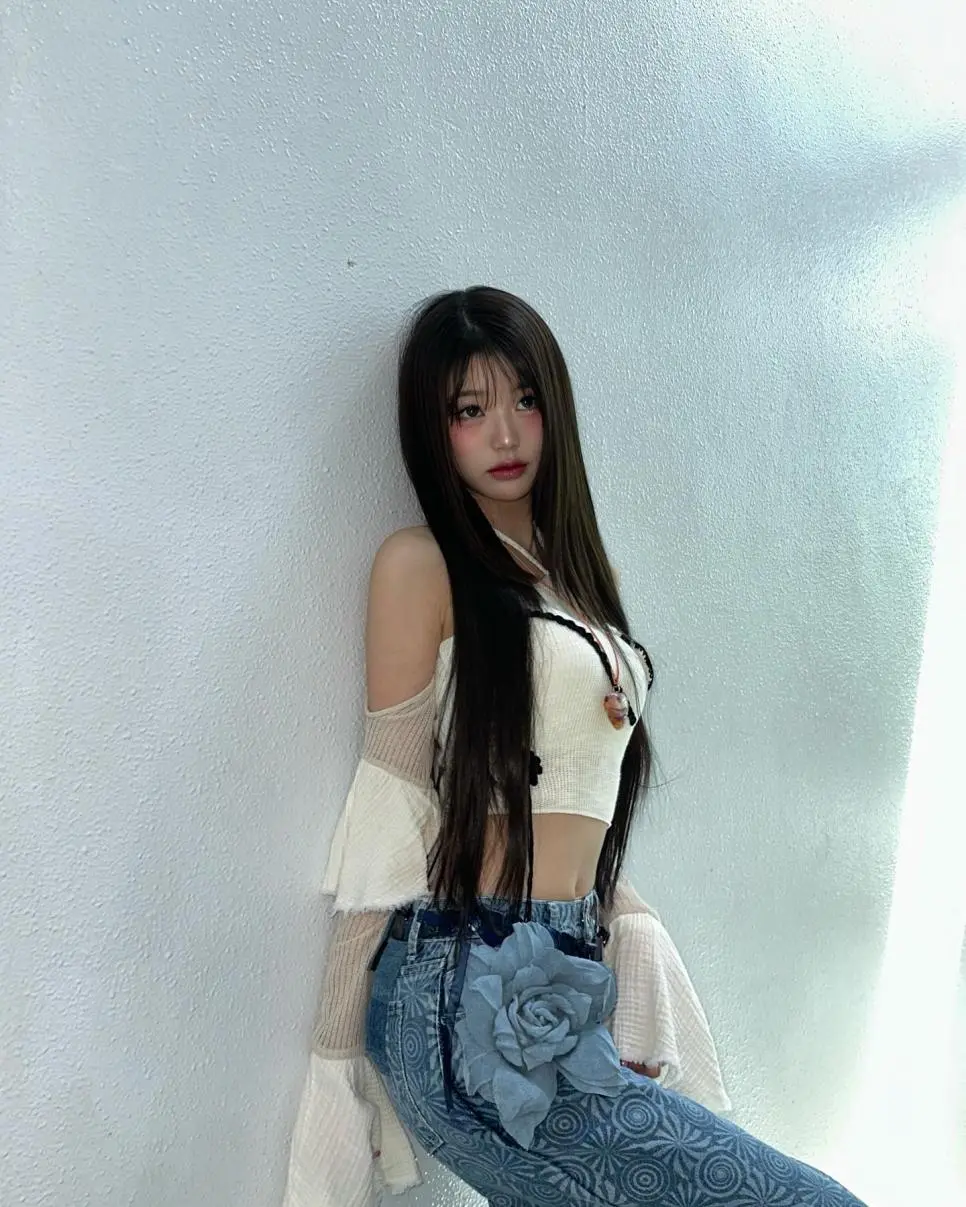케플러 샤오팅 모노키니 + 가죽핫팬츠