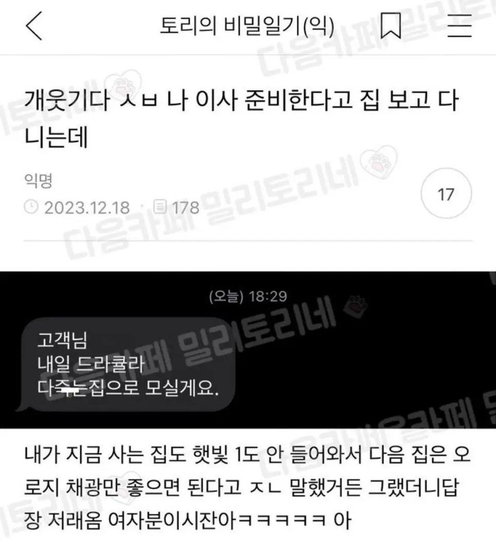 개웃기다 ㅅㅂ 나 이사 준비한다고 집 보고 다니는데