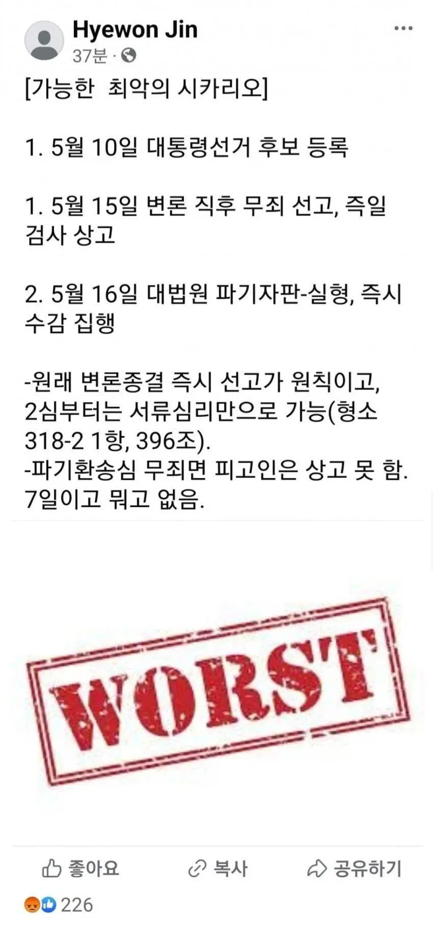 진혜원 검사 최악의 시나리오