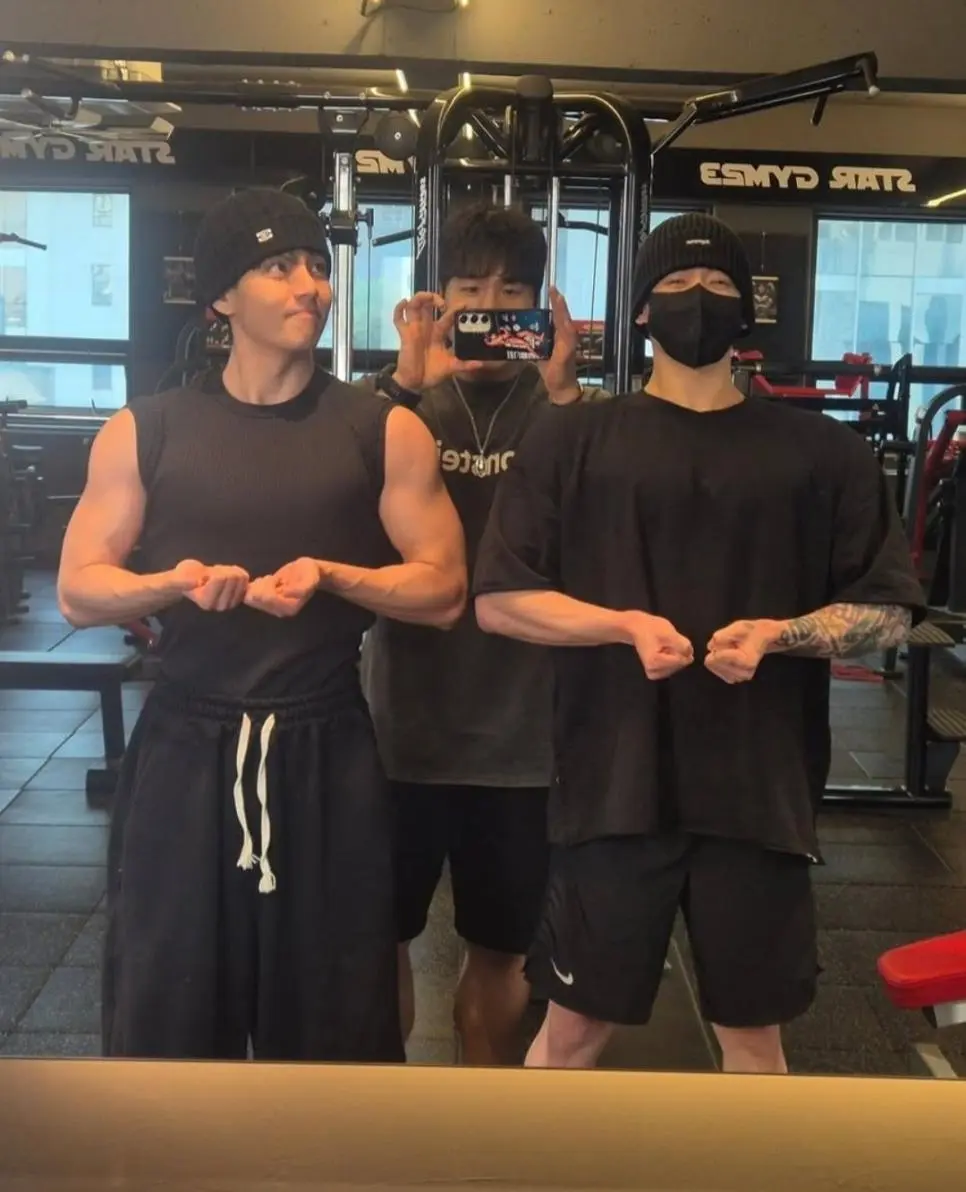 운동사진 뜬 방탄 뷔,정국