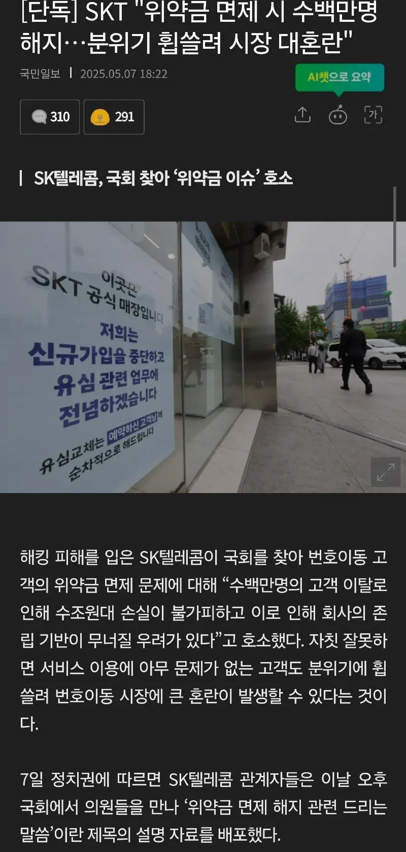 그동안 고객들한테 기한 안지켰다고 꼬박꼬박 위약금 쳐받아먹고 1년에 매출 18조씩 올리면서 개같는 소리하네 그렇게 천문학적인 돈을 쳐벌고도 푼돈 아끼려고 보안 투자 꼴등으로 해서 해킹 당하고 지들 잘못으로 해약하겠다는데도 지들 손해 많이 본다고 위약금 내라고 함 가만히 앉아서 수조원을 벌면서 지금보다 덜 벌게 된다고 앓는 소리하고 있네.